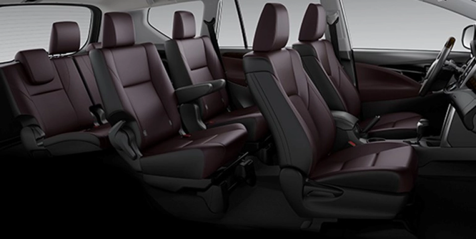 - Toyota Innova được thiết kế với không gian rộng rãi và tiện ích cho tất cả các hành khách. Xe có thể chứa được 7 người hoặc một tổ hợp ảo gồm ghế người lái và hàng ghế sau gập được để tạo ra không gian lưu trữ rộng rãi.